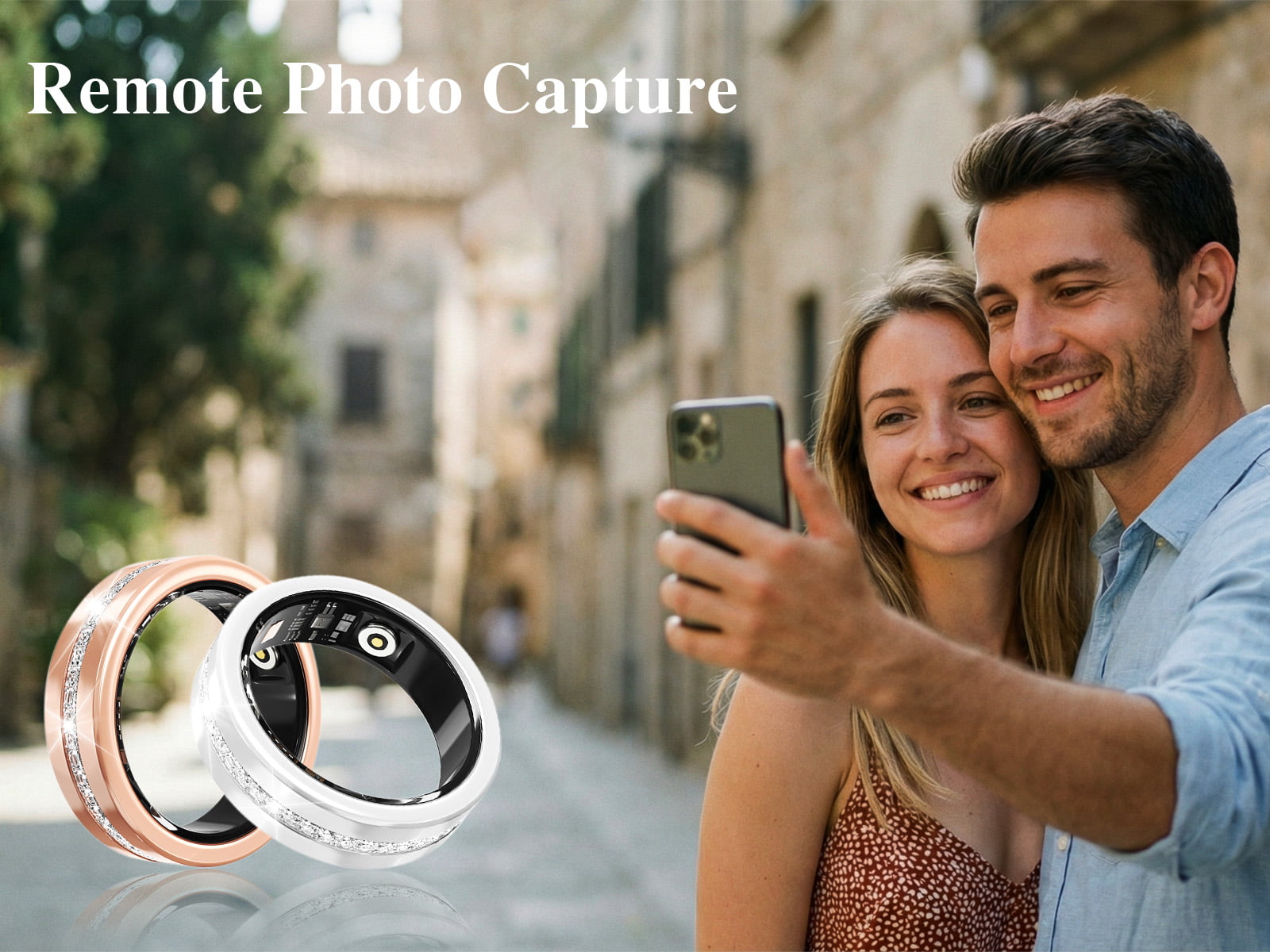 Use the ring as a remote shutter to control your smartphone camera—perfect for group photos, selfies, and hands-free shooting.