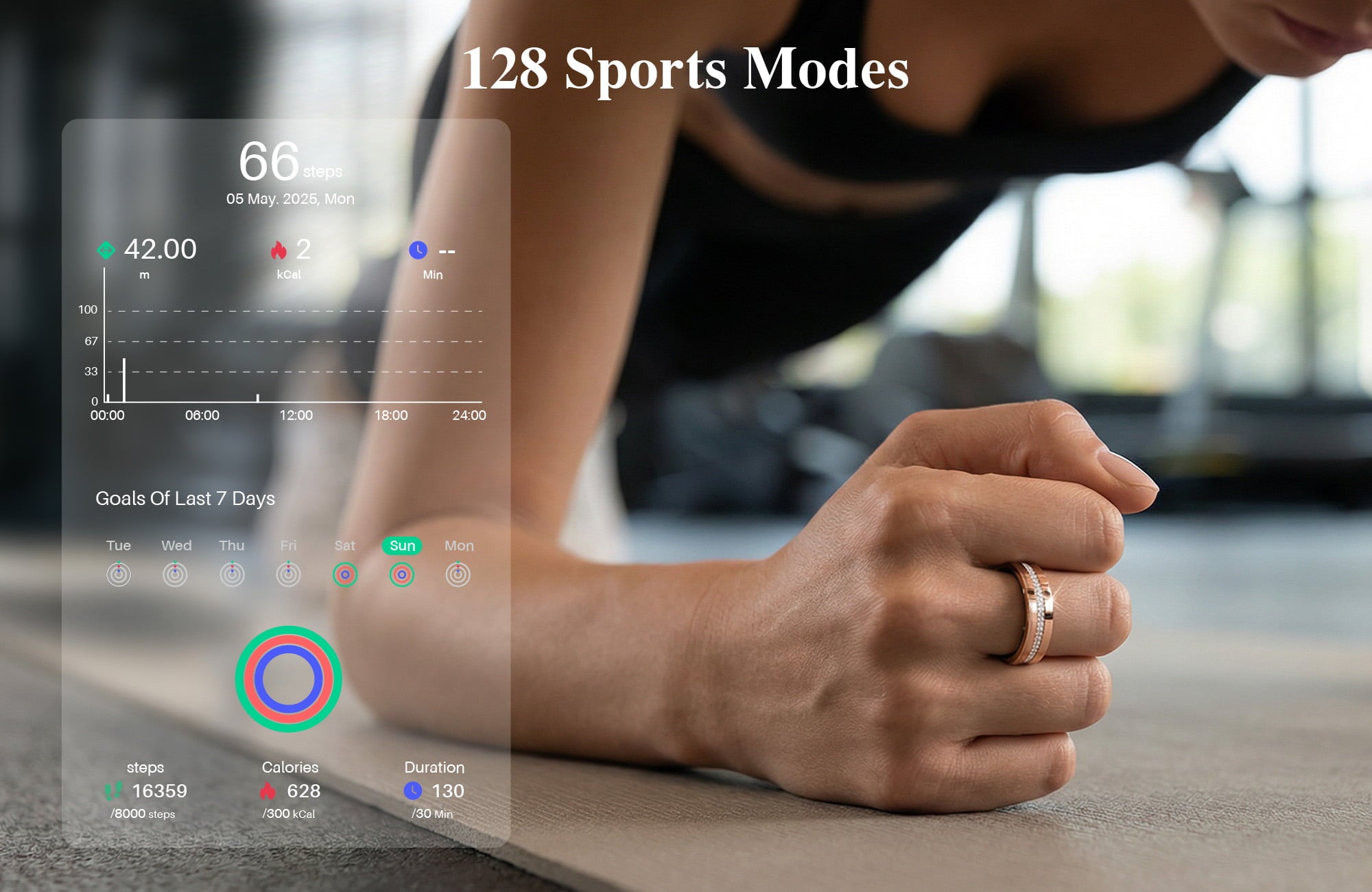 Support 128 workout modes, including 123 standard activities and 5 GPS-based sports such as running, cycling, walking, skipping, and swimming—accurately recording your movement and performance.