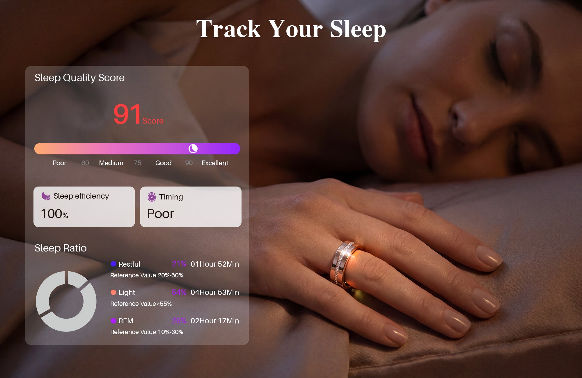 Automatically track your sleep stages, including deep sleep, light sleep, and REM sleep, helping you understand sleep quality and improve nightly recovery.