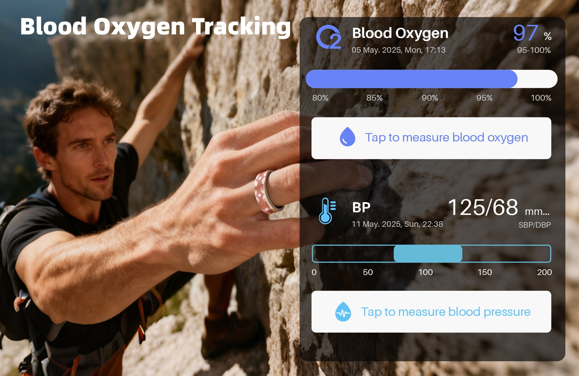Track your oxygen levels and blood pressure anytime, anywhere for clearer insights into your daily wellness.