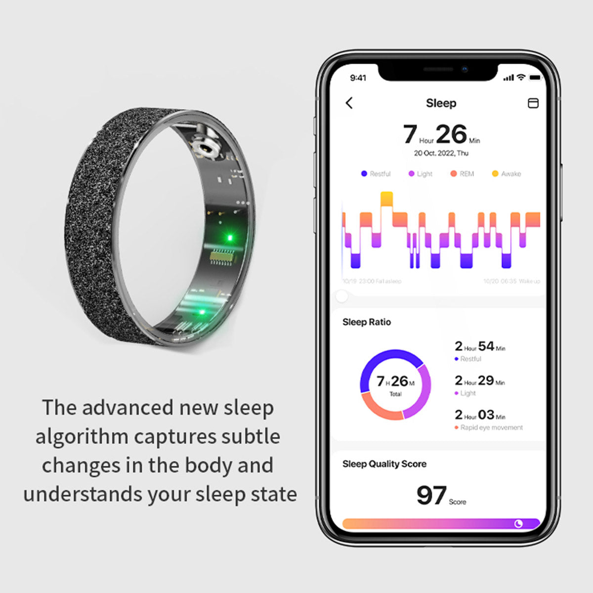 Our smart ring support 24/7 heart rate monitoring, real-time data analysis, 7-day trend tracking, and historical records through its app, offering precise insights to optimize your cardiovascular health.